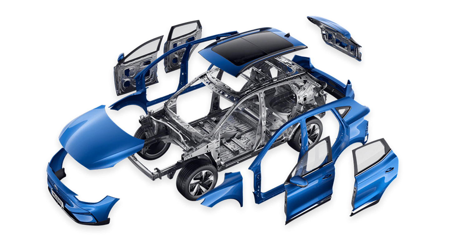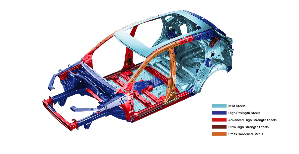 Eine Karosserie des MG ZS EV besticht mit einem intelligent designten und energieabsorbierendem Käfig aus hochfestem Stahl.