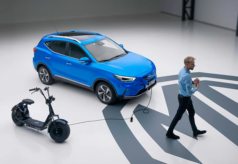 Mit der V2L-Funktion* (Vehicle-to-Load) wird Dein MG ZS EV zur Automobilen-Powerbank. Du kannst jedes Elektrogerät mit einer Ausgabe von bis zu 2 200 W aufladen oder direkt betreiben.